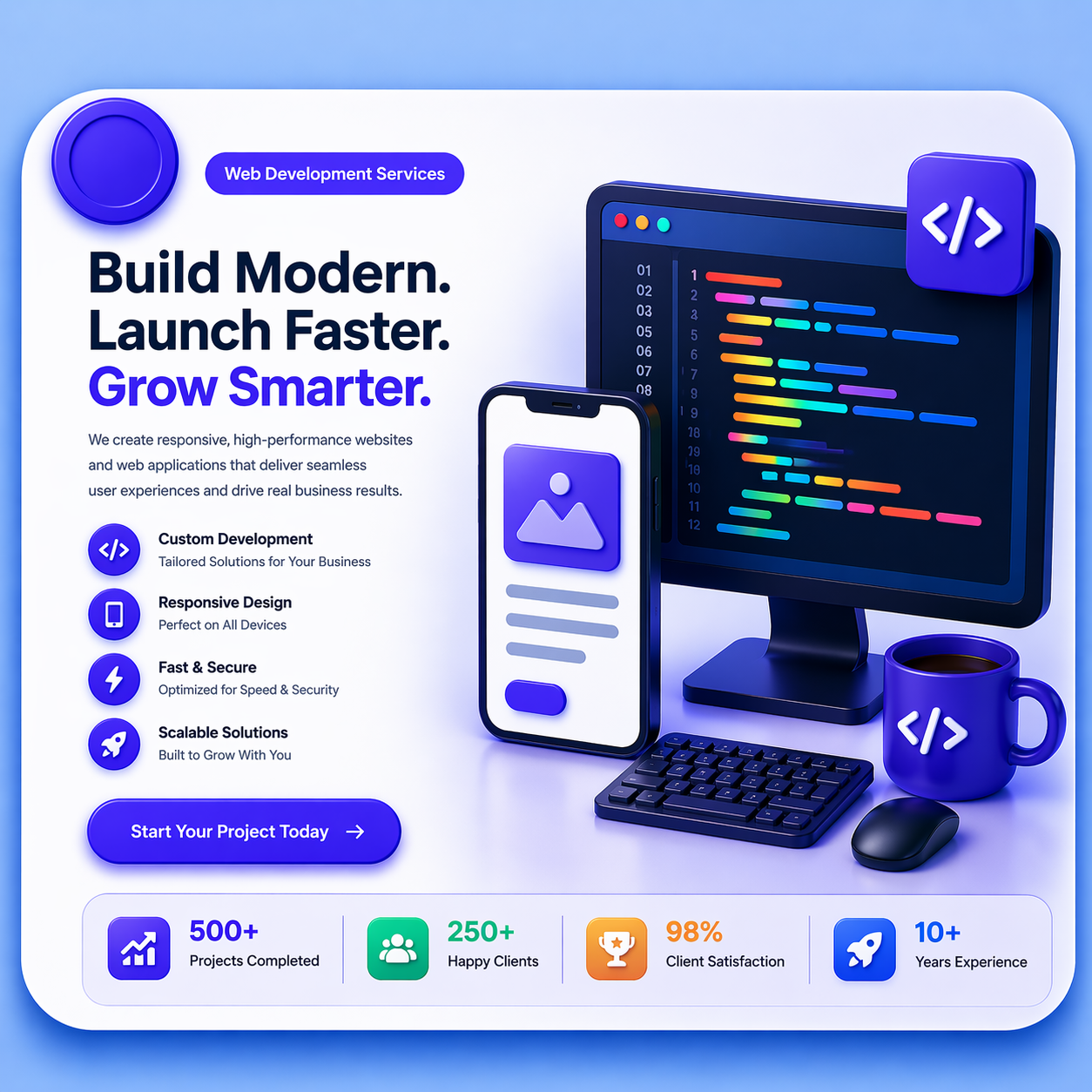Create fast, responsive, and user-friendly websites that deliver seamless user experience.